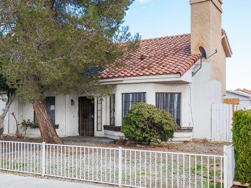 This two-story Palmdale home on a corner lot in an established neighborhood is just minutes away from the premier eastside shopping and restaurant area and provides a great opportunity to customize inside and out. The front yard with mature shade trees is enclosed with a wrought iron white fence and a nice wide driveway provides for parking along with the two-car garage. Downstairs, the living room is highlighted by a cozy fireplace and flows into the dining area; the adjoining kitchen opens to a secondary living area. A downstairs bedroom and guest bath provides extra accommodation. Upstairs, the primary bedroom incudes a private bath with separate tub and shower; two more sizable bedrooms and another full bath complete the top floor. The backyard enjoys plenty of hardscaping - a large patio, concrete walkways and a paved side yard.