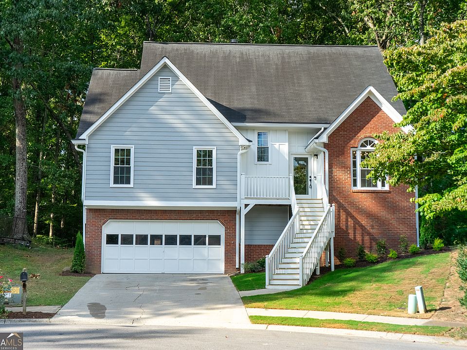 Welcome to this beautifully renovated home, tucked away on a peaceful cul-de-sac, offering a private retreat and a perfect blend of modern upgrades and serene surroundings. From the moment you step inside, you'll be captivated by the fresh, inviting atmosphere. The spacious brand-new deck invites you to relax while taking in the breathtaking view of the wooded area, a tranquil escape right in your backyard. Inside, the entire home has been thoughtfully refreshed with new paint and stunning flooring. The main living area showcases solid white oak wood floors, exuding warmth and elegance, while plush new carpet ensures comfort in every bedroom. The completely redesigned kitchen with 42inch cabinets is a true showstopper, perfect for those who love to cook and entertain, featuring sleek new appliances, including a dishwasher, range, and microwave, and ample space for gathering with family and friends. The family room, with its soaring vaulted ceiling and cozy fireplace, opens to the deck and secluded backyard, creating an ideal space for indoor-outdoor living. The primary suite on the main floor is a private sanctuary with a beautifully renovated en-suite bathroom, a generous walk-in closet, and a separate water closet for added privacy. Need more space? The unfinished basement offers endless potential for storage or future expansion to suit your needs. Located in the heart of Powder Springs, this home places you near a variety of local attractions, including the scenic Silver Comet Trail, Wild Horse Park and BMX Track, the Hardy Family Amphitheater, and an array of charming shops, restaurants, and a local brewery. This home is ready to provide years of comfort and enjoyment, come see it for yourself and experience the perfect balance of privacy, style, and convenience!