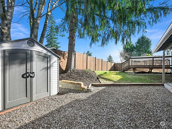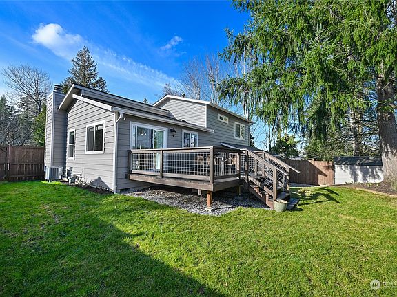 Beautiful turn-key tri-level! This open concept floor plan has vaulted ceilings throughout, allowing for maximum natural light through the walls of windows. This 3 bed, 2 bath home features A/C, tankless water heater, new stainless steel appliances, wood fire insert, 3 decks, bonus storage room off the garage, and extra off street parking. The separated primary suite with huge walk-in closet and ensuite bath has French doors leading out to a private deck. The fully fenced front and back yard with mature landscaping, creates a sense of privacy on this large lot. Close to Lake Whatcom and Barkley Village, and just steps from Northridge Park and the trail system. This won't last long!