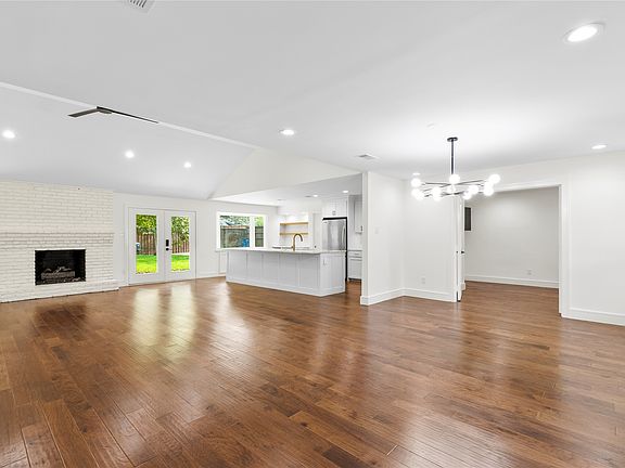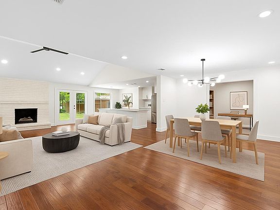 The open-concept layout features vaulted ceilings and engineered wood flooring. The kitchen overlooks the spacious family room and offers white shaker cabinets, natural stone countertops, and a large center island—ideal for cooking, entertaining, and storage. The front dining room is perfect for formal meals or flexible living. The generous primary suite includes an updated bath with dual sinks, lighted mirrors, a large walk-in shower, private water closet, and a walk-in closet. Secondary bedrooms are oversized and share a Jack-and-Jill bathroom. The large backyard is pool-ready and includes an open patio, electric gate, and extended driveway—great for basketball or pickleball. Located near the Northaven Trail, top-rated Withers Elementary, shopping, and dining. A rare opportunity in a coveted location!