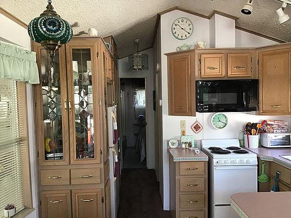 Don t miss this charming one-bedroom, one-bath home tucked away on a quiet dead-end street in the desirable 55+ active community of SWE 175 Sweetwater RV Resort. Step inside to a spacious room addition that nearly doubles the original living area perfect for a living room, entertainment space, or card games with friends. The open layout seamlessly connects the living room, dining area, and kitchen, which features ample built-in cabinetry for storage. The bathroom is generously sized and includes a convenient walk-in shower. The bedroom comfortably fits a queen-size bed and boasts an entire wall of closets and built-in storage. Additional highlights include a large utility room with plenty of extra storage and a washer and dryer included. This home is a must-see schedule your showing today!