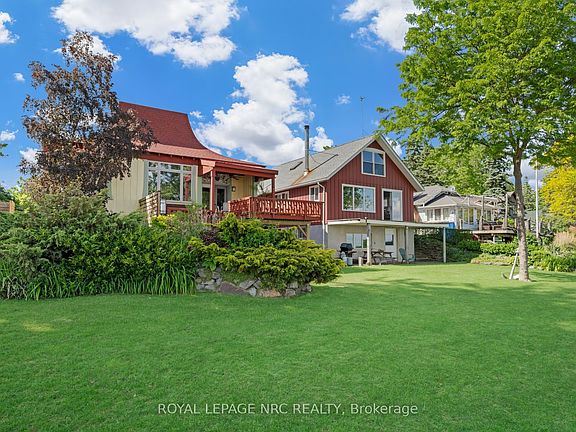 Unlike many older properties in the area, this home was constructed from the ground up in 2002, offering the peace of mind of modern building standards paired with timeless character. With over 1,500 sq. ft. of thoughtfully designed living space, a full dry walkout basement and a rare attached garage, this property combines everyday functionality with the beauty of lakeside living. The basement presents exciting potential for future finished space with loads of room and a bathroom rough-in.Inside, the main floor features two bedrooms and two full bathrooms, including a primary suite with serene water views and a spa-inspired en-suite. Sliding doors open to the covered deck, where you can take in sweeping lake views. The open-concept design makes the home ideal for both year-round living and seasonal getaways, with a hand-laid stone fireplace anchoring the living area in warmth and character. Upstairs, a versatile office space provides quiet separation for work or hobbies.The homes unique design pays tribute to Crystal Beach history, with its iconic tented roofline and board-and-batten exterior echoing the golden era of the Crystal Beach Amusement Park. While rich in character, this is a well-built 23-year-old home ready for its next chapter.Located within easy walking or biking distance to Ridgeway and Downtown Crystal Beach, youll enjoy a friendly, walkable community filled with local shops, vibrant restaurants, and a relaxed pace of life. The sandy and rocky shoreline offers endless opportunities for exploration, and with Buffalo only 20 minutes away and Niagara-on-the-Lake just 30 minutes, youre at the heart of it all.This is more than a home its a lifestyle, where modern construction meets historic charm on the shores of Lake Erie. Dont miss your chance to own a piece of Crystal Beach paradise
