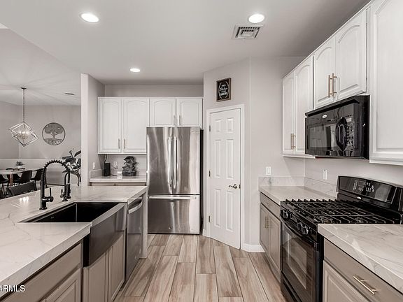 The interior of this home was completely overhauled in 2020 including fresh paint, neutral oversized wood-look tile, new light fixtures/fans, two-tone kitchen cabinets, waterfall marble countertops, farm sink, and more, this home is MOVE IN READY!