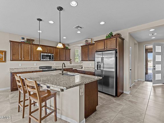 Situated on a large lot with incredible desert views, this home offers an open floor plan designed for modern living. Large windows throughout the living and dining areas bring in abundant natural light, creating a warm and inviting atmosphere. The spacious kitchen flows effortlessly into the great room, providing a perfect space for both everyday living and entertaining.