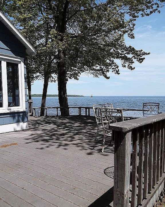 The home is being sold by owner. ...... Please call Kathleen or Dave at 906-481-1556 or cell at 906-281-8006. ....... Property overview: A beautiful summer cottage or year-round home, with a fabulous waterfront where you can enjoy a panoramic view that includes Lake Superior, South Portage Entry Lighthouse and Huron Mountains. ........ The cottage is updated and comfortable with wood cabinets and stainless steel appliances in the kitchen; knotty pine cabinetry and a beautiful natural stone fireplace, so popular in Lake Superior cottages; and a three season porch with knotty pine walls and ceiling with large windows. The charm of the cottage includes French doors to the insulated sun-room leading to a large composite deck overlooking the lake. The main floor bedroom has a sliding patio door that also leads to the deck. The bathroom is efficient, and includes a stand up shower and sauna. The upper level is a functional sleeping space with separate areas for many to sleep, and the dormer makes a nice study area. This home is being sold furnished.