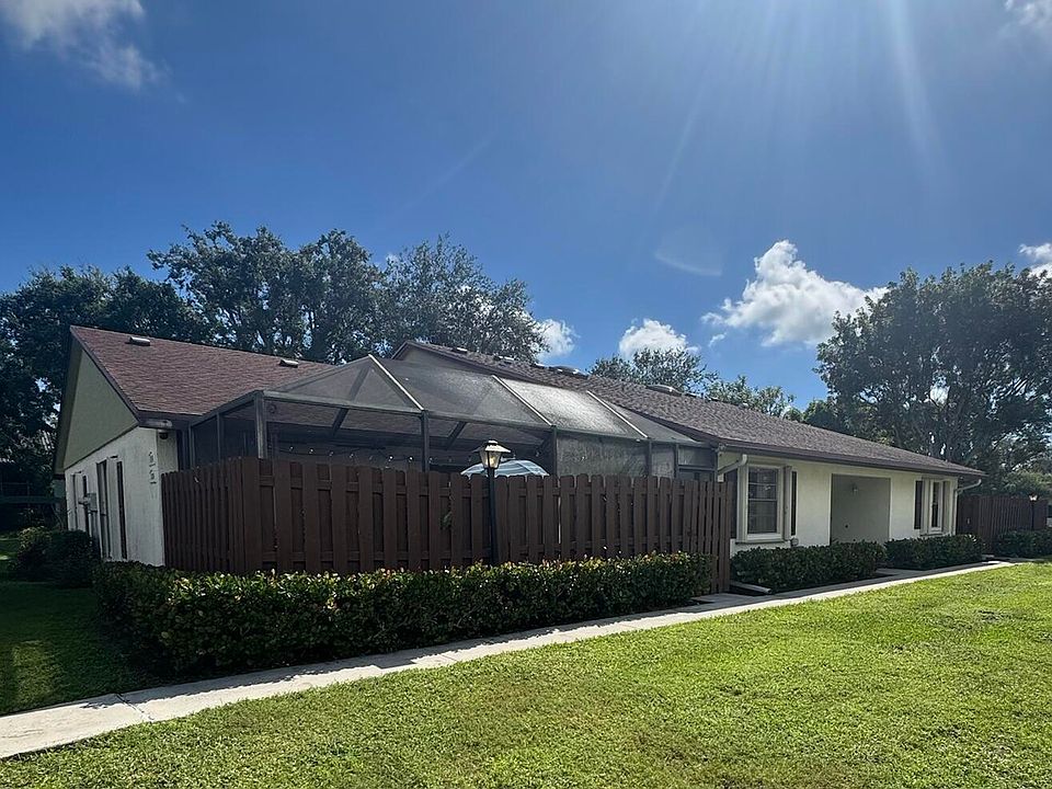 Welcome to Oakwood Lakes! This charming 2-bedroom, 2-bathroom villa is ideally located in the heart of Boynton Beach. Enjoy an open-concept floor plan with volume ceilings that create a bright, spacious feel. The large kitchen features granite countertops, stainless steel appliances, and plenty of cabinet space--perfect for cooking and entertaining. Step outside to your private, fenced, and screened-in patio, ideal for relaxing or dining outdoors. Entire villa has accordion shutters for peace of mind. New Roof will be installed beginning of 2026 (assessment will be paid by seller) Oakwood Lakes offers the residents tennis courts, pool, and club room for community events. A great central location close to shopping, dining, beaches, and major highways.
