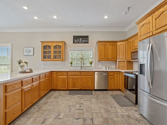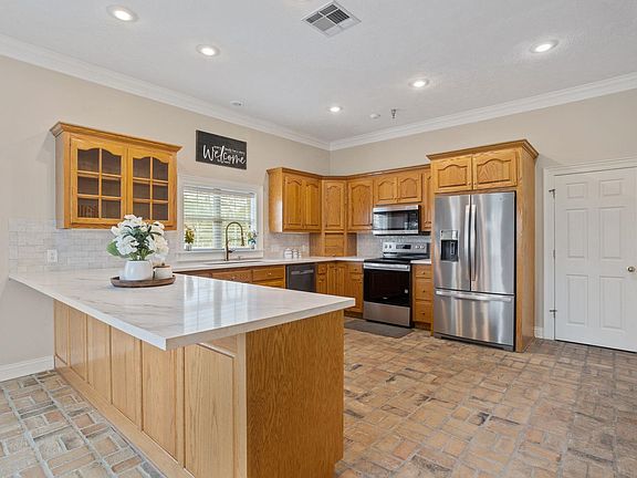 Welcome to “The Ranch” in North Sulphur! This stunning one-owner home sits on approximately 33.5 acres in a prime location with Hwy 27 Frontage. Some of the features include a grand foyer, a spacious kitchen with new quartz countertops, a huge pantry with ample storage, formal dining, a separate breakfast area, and more. Step into the beautiful living room to find soaring custom wood ceilings, a wood-burning fireplace, and brick flooring. The main level offers two bedrooms, each with its own bathroom and custom closet, giving you the choice of your primary suite while offering guests their own private retreat. A custom-built wood staircase leads upstairs to two more large bedrooms, a bathroom, a flex room, and abundant storage. Outside, a remodeled apartment above the two-car garage is perfect for guests or a live-in farmhand. A dog run containing 4 kennels sits just behind the garage. A perfect place to keep your working dogs safe or convert to a goat pen. The property features acres of fenced and cross-fenced pastures, a slab with power and sewer ready for a new barn office, and several horse washing or doctoring stalls. On the south side, you’ll find a 36x72 12-stall barn and a 91x80 24-stall barn, both with interior and exterior access—ideal for launching your own horse boarding and training facility. Both barns have water and electricity in place! For fishing enthusiasts, there’s a large, stocked pond in the southwest corner, plus additional pastures and a smaller stocked pond on the north side of property. A 30x40 shop adds even more utility storage. Roads are in place to access most of the property from the main driveway. This property is brimming with potential of all kinds! Schedule a visit and make your dream horse property a reality! All measurements are approximate. Home is in Flood Zone X. **Agents see private notes**
