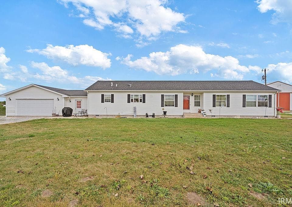 With a Kokomo address and the country setting just outside of Russiaville, this home provides quiet living with easy access to town amenities. This home has 3 bedrooms and 2 baths with a private primary en-suite bath and a bonus room that would make an ideal office space. It is a manufactured home that sits on .84 acres of land and has a nice fenced pasture! You’ll also love the attached 2 car garage, plus a large detached heated garage—and a fire-pit with a gazebo and swings. Please note: The Pole barns located beyond the fenced pasture are not included in the sale/not a part of the parcel.