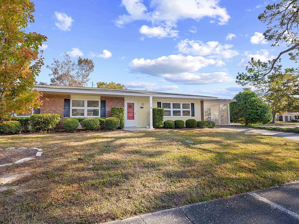 Welcome to Seagate Village! This home is situated on a large corner lot. Step inside and you will find new luxury vinyl flooring and fresh paint throughout. The spacious living room and dining room has plenty of light. The kitchen features a window above the sink so you can enjoy the Carolina sunshine while you do your dishes. There are two well sized bedrooms, one with a view of the front yard and one with a view of the back yard. There is plenty of storage in this home including a large storage area off the kitchen for all of your extra stuff. Outside, in the carport, there is another large storage room... maybe for your beach chairs and more. This amazing community is located between the Myrtle Beach State Park and The Market Common. You can ride in a golf cart to shopping, the bark park, groceries, the beach and the list goes on. This move-in ready home is waiting for you to make this your home today!