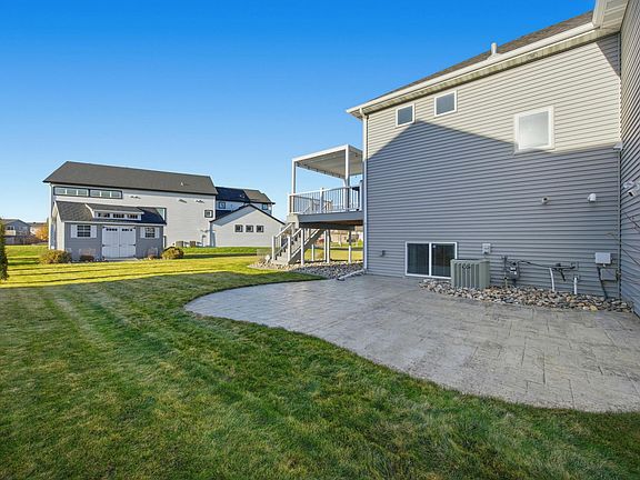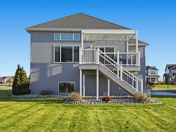 Welcome to Shadow Creek! This well-maintained, cared-for and upgraded 3-level is the perfect location near Shadow Wood Park and Splash Pad, Liberty Middle School and Sheyenne High School. The beautiful 11,000+ square foot corner lot in an established and desirable development cul-de-sac is surrounded by city convenience, paths and ponds. Enjoy 12’ ceilings in the great room with gas burning fireplace and 9’ ceilings in the lower level family room. Open and entertaining kitchen has quartz, stainless steel appliances, built-in desk/drop zone and walk-in pantry. Nice-sized dining has sliding glass door to maintenance-free composite deck with sun shade aluminum pergola. Three bedrooms on the upper level includes a primary suite that has a private bath with double sinks, tiled shower with glass door and walk-in closet. Additional full bath with double sinks, linen and laundry room up! Family room, fourth bedroom and third bath in lower level plus mechanicals that include a passive radon system, gas forced air, central air and a city sewer diverter valve. Insulated and heated dream 3 stall garage has an extra 4’ of depth, floor drain and custom cabinetry with soft-close hinges. Exterior upgrades include stamped concrete patio, professional landscaping with curbed edging, 12 x 16 storage shed and zoned sprinkler system. Beautiful home, yard and location!