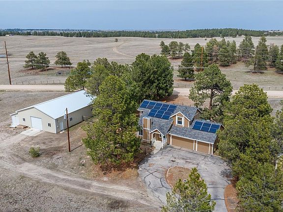 Energy saving solar panels on main home (paid off at closing) ~Asphalt circle driveway ~ RV pad & outlet on east side of home ~ Fully Fenced backyard off main home ~ Separate Fully Fenced Back area off other living quarters ~ Separate electric bill for outbuilding ~ Just off paved CR 21 ~ 40 Mins to Denver ~ No HOA