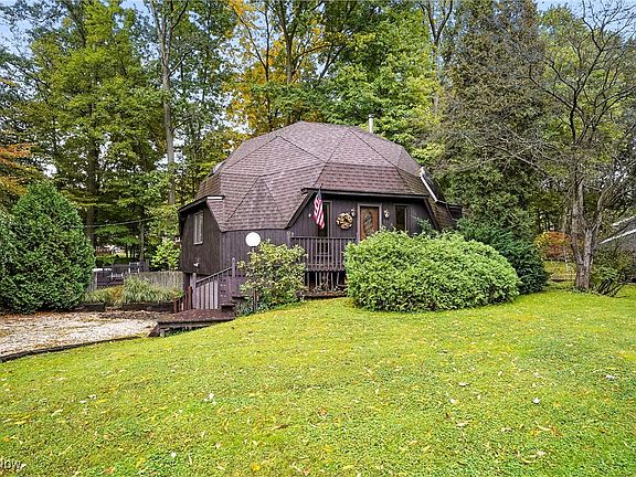 Contemporary Dome home features 4 BR 2 FULL BA. Open airy flooded with natural light. Spacious walk-in closets, gas fireplace. Screened in rear porch and above ground swimming pool perfect for entertaining friends & family. Owners can also join the Brimfield Lake Association for use of beach & pavilion.