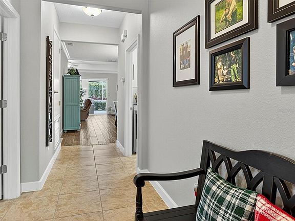 Welcome to the highly sought-after “Bonita” model, ideally located in the 55+ community of Heritage Hills. This rare gem offers exceptional privacy with no rear neighbors and features charming curb appeal, including a newly installed roof, stone façade accents, professional landscape curbing, a custom front door, and a new quiet-close garage door. A screened-in front porch leads into a welcoming foyer that sets the tone for the inviting interior. Inside, the oversized family room impresses with a tray ceiling and triple sliding glass doors that open to the screened lanai, allowing you to enjoy fresh breezes and beautiful Florida weather year-round. The home has been freshly repainted and includes crown molding in the living room, dining room, and primary suite, along with upgraded comfort-height toilets. The stylish kitchen offers abundant cabinetry, granite countertops, stainless steel appliances—including a recently replaced refrigerator—a pantry, and convenient counter seating, with a formal dining room just steps away. The spacious primary suite features two walk-in closets and sliders that open to the extended screened lanai with stone flooring. Its en-suite bathroom includes dual granite-topped vanities, a soaking tub, and a separate walk-in shower. A nicely sized guest bedroom provides comfortable accommodations, while the third bedroom—currently used as a den or office—features French doors and a custom built-in desk. The HVAC system was replaced just five years ago, and the HOA provides peace of mind by covering all lawn mowing, twice-yearly mulching, and exterior painting every five to seven years. Heritage Hills, built by Lennar Homes, is nestled among Clermont’s rolling landscapes and designed with Mediterranean charm. This gated, active 55+ community offers resort-style amenities including a heated pool and spa, tennis and pickleball courts, bocce, shuffleboard, basketball, and a grand clubhouse with a 24-hour fitness center, exercise and craft rooms, library, card rooms, and a ballroom with stage and catering kitchen. Residents also enjoy a scenic 5-mile walking trail. The location is ideal, with convenient access to major highways, medical facilities, shopping, and dining. You are just minutes from downtown Clermont or a quick trip through the back gate to Winter Garden Village.