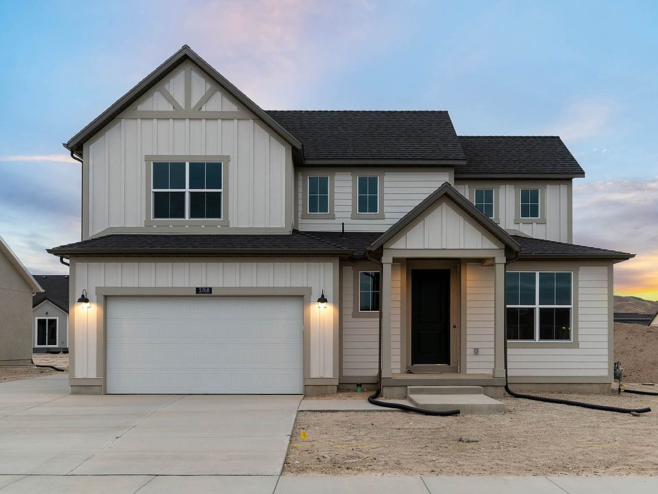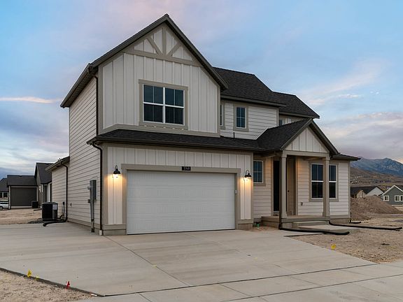 Come see this beautiful 2200 Farmhouse style home located near schools, parks and Thanksgiving Point shopping. Featured you will find white laminate cabinets, quartz countertops, and platinum gas appliances. Boasting laminate hardwood, tile, and carpet flooring, a box window in the owner's bedroom provides extra room and can lighting, and Christmas light outlets offer extra lighting options. Modern amenities include a tankless water heater, energy-efficient options, RV pad, and gas log fireplace. The grand bathroom offers a stylish retreat with cultured marble surrounds and black matte hardware. Finished with wood stair railing, two-tone paint, Craftsman base & casing this home offers it all!