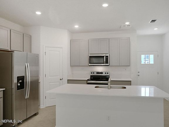 Step inside this 3-bedroom, 2.5-bathroom residence and be greeted by an open-concept main floor that effortlessly blends style and functionality. The gourmet kitchen is a standout, featuring sleek stainless steel appliances, shimmering Quartz countertops, a large center island with breakfast bar seating, and abundant cabinetry. It flows seamlessly into the bright dining and living areas, creating the perfect backdrop for both everyday living and entertaining.