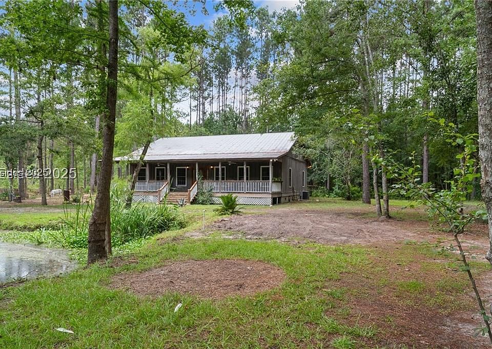 Set on 5 acres with a private pond, this inviting 3-bedroom, 2-bath home captures the best of Lowcountry living-peaceful, private, and free from HOA restrictions. Inside, you'll find a well-planned layout with 10-foot ceilings, spacious bedrooms, and an inviting open living area that connects effortlessly to a functional kitchen perfect for everyday comfort or entertaining. The home showcases handcrafted heart-of-pine floors and cabinetry, complemented by butcher block countertops for a timeless, warm aesthetic. Thoughtful upgrades include dual-zone heating and cooling for the secondary bedrooms, an oversized 80-gallon water heater, and a 100-gallon well tank for added convenience. A newly installed well and pump provide dependable water access. Ideally located just minutes from Ridgeland and a short drive to Bluffton and Beaufort, this property blends privacy, charm, and accessibility in a truly special setting.