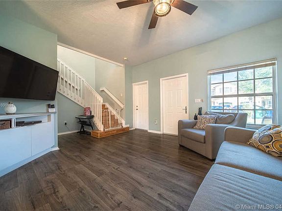 Immaculate and charming corner unit townhome in a small quiet community. Pride of ownership is apparent as you enter into the large spacious living area. Beautifully updated kitchen featuring white cabinetry and granite counter-tops plus additional built-ins for extra storage. Upstairs you'll find an expansive master bedroom with en-suite bathroom and a large walk-in closet. Home also includes a one car garage and a covered patio area in addition to a fenced in backyard. The home features complete hurricane impact windows and doors and a brand new roof. Low HOA payments. Hurry, this one won't last.