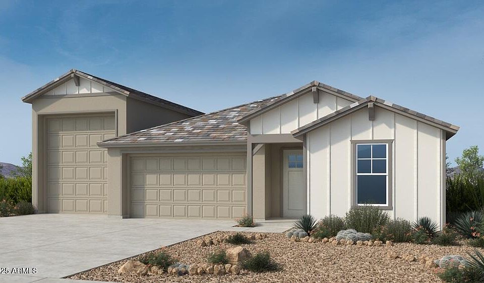 New Construction - January Completion! Built by America's Most Trusted Homebuilder. Welcome to the Embark at 37690 N Plumbago Road in Combs Ranch Journey Collection! This beautifully designed new home offers open-concept living with a gourmet kitchen featuring quartz countertops and a large center island that flows effortlessly into the great room and dining area, perfect for gatherings. Extend your living space outdoors with the covered patio, ideal for relaxing or entertaining. The primary suite is tucked at the back of the home and includes a spa-inspired en-suite and a spacious walk-in closet. Two secondary bedrooms, a full shared bath, a powder room, and a versatile flex space are conveniently located off the foyer. A two-car garage paired with a large RV garage. MLS#6915647 Community Highlights: Life at Combs Ranch means incredible amenities just steps from home. Take a dip in the shimmering pool, let kids explore imaginative playgrounds, or unwind in lush greenbelts and the serene butterfly garden. Nearby, enjoy local favorites like Schnepf Farms, Founders' Park Splash Pad, or even try Baby Goat Yoga for a unique experience. Savor delicious bites at Queen Creek Olive Mill and top it off with a sweet treat from Menchie's Frozen Yogurt. Everyday conveniences are close at hand with Safeway, Sprouts, Trader Joe's, and Target just minutes away. Additional Highlights Include: Gourmet kitchen, multi slider door at great room, extended covered patio, shower in place of tub at secondary bath, and pavers at front porch, driveway and entryway.