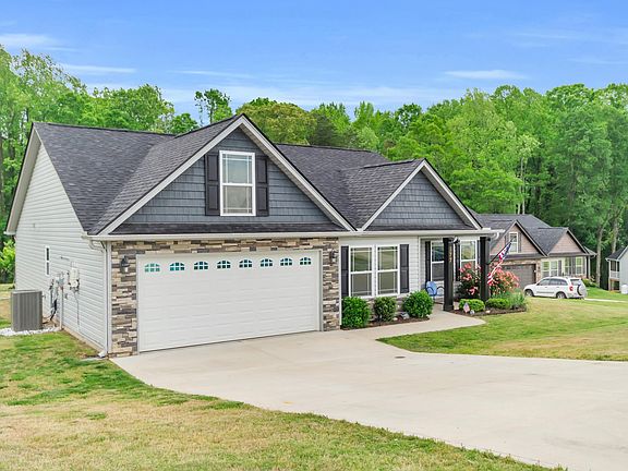 Charming Craftsman on Over an Acre in Inman! Welcome to this beautiful single-story Craftsman home, perfectly situated on a spacious 1.04-acre lot in the desirable Macdonald subdivision. Built in 2021, this 3-bedroom, 2-bath home offers a perfect blend of comfort, style, and functionality. Step inside to discover an open-concept living area filled with natural light from large windows and enhanced by trey ceilings. Whether you're relaxing by the cozy fireplace or entertaining guests, the seamless flow from the living room to the kitchen and dining area sets the stage for effortless living. The kitchen features a popular central island—ideal for morning coffee, casual meals, or gathering with friends. Elegant touches like wainscoting, crown molding, tall ceilings and ambient rope lighting add warmth and sophistication throughout the home. Double glass patio doors lead to a covered patio, making indoor-outdoor entertaining a breeze. The spacious backyard, framed by a lovely tree line, is perfect for gardening, outdoor games, or summer barbecues—and even includes established fruit trees for your enjoyment. The thoughtfully designed split floor plan provides added privacy, with the master suite tucked away from the additional bedrooms. Enjoy a walk-in closet and a luxurious en-suite bathroom featuring a large granite-topped vanity and a sleek walk-in shower. Conveniently located just off Highway 11 in Inman, with easy access to I-26 and Highway 9, this move-in ready home offers peaceful living with excellent connectivity. Don’t miss your chance to make this inviting Craftsman your own—schedule your private showing today!