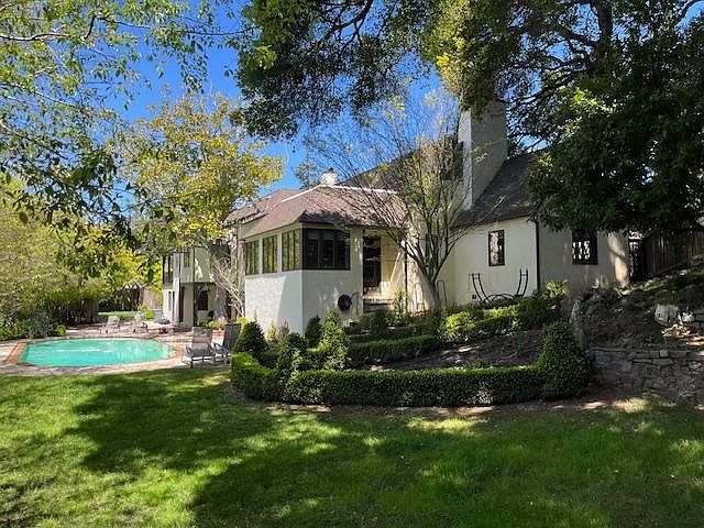 In San Mateo Park, on the border of Hillsborough, this enchanting Tudor presents a blend of vintage charm with thoughtful remodeling. Built in 1935, details like original hardwood floors, paneled walls, and custom wall coverings,recall the home's early heritage. Bringing a more modern appeal is the kitchen, remodeled in Carrara marble with high-end appliances, plus all updated bathrooms. Classic formal venues and a lower-level family/recreation room opening to the pool and rear grounds, along with 4 bedrooms and 4.5 baths, provide ample living spaces. A mezzanine level accommodates the primary suite and two bedrooms with a shared bath, while the top floor unfolds with a multi-room suite perfect for an au pair or the perfect remote office. Topping it all off is proximity to both downtown San Mateo and Burlingame as well as easy access to San Francisco or Silicon Valley. Owner pays for garden and pool service as well as professional management. Additional deposit for small dogs under 20 lbs. Could be ready before 2/1/25...