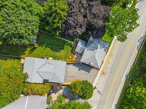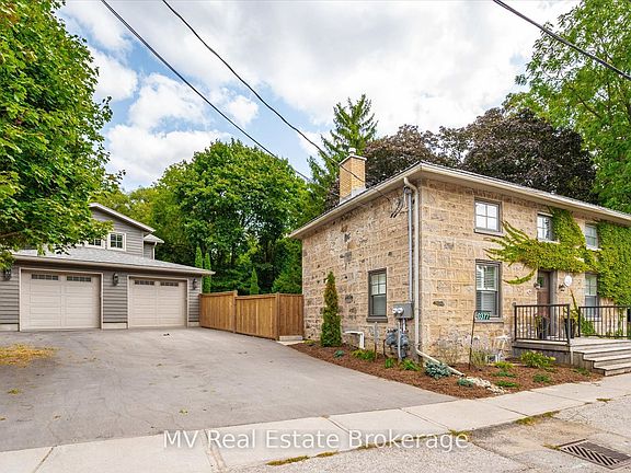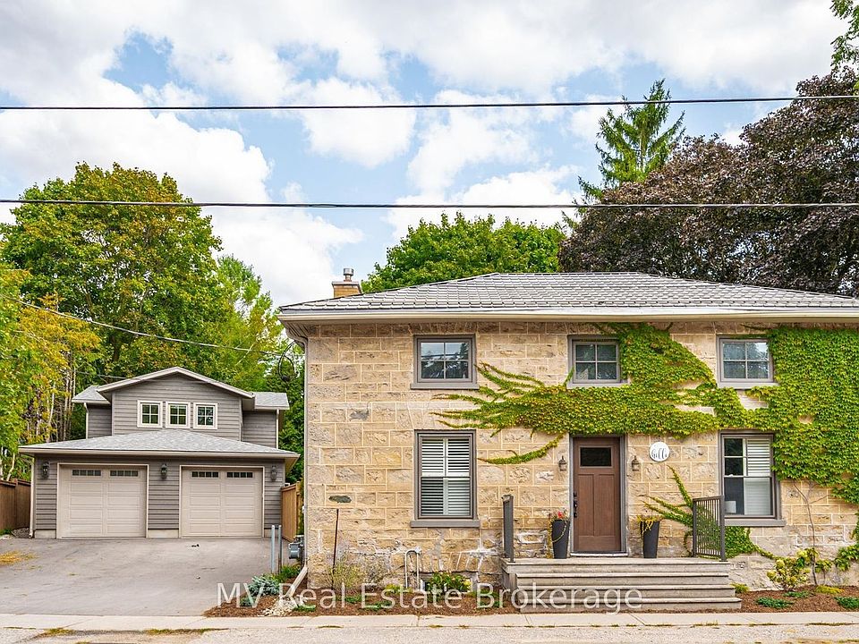 Discover an exceptional opportunity in the heart of Elora: two complete homes on one beautiful, treed lot, offering flexibility for multi-generational living, guest accommodations, or strong rental income. The Stone House blends heritage charm with modern updates and expansion opportunities. Recent improvements include a fully renovated kitchen, updated bathrooms, new windows and doors, refreshed flooring, insulation upgrades, and a rebuilt chimney. A newer furnace (2023), A/C (2019), water heater (2025) and electrical panel (2020) provide peace of mind. The Coach House (Built 2024) offers stylish, low-maintenance high efficiency living with beautiful LVP flooring throughout, a bright modern custom kitchen, upstairs laundry, and a spa-like bathroom. The cozy radiant floor heating throughout the main floor is simply perfect for the home. The fenced backyard and landscaped patio create an intimate outdoor retreat. A double garage provides a dedicated parking bay for each home. The property features professional landscaping, mature trees, green space views across the road, paved driveway, new fencing, shared well and water systems, and full appliance packages in both homes. Houses are separately metered. Located just a short walk to downtown Elora's restaurants, shops, and riverfront trails, this is a rare chance to live beautifully close to nature and community. With estimated rental income of $3,000+ per month per dwelling, this property is both a lifestyle upgrade and a smart financial move. Two homes. One remarkable setting. Endless possibilities.
