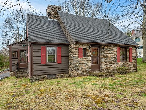 Charming Stone Front Currier & Ives Cape! Built by the owner's family in 1939, the stacked stone and wide rough sawn wood siding has stood the test of time. Inside the stone is repeated in the living room fireplace. The dining room has 2 china closets, and is open to the living room. There is a den with beamed ceiling, & a large master bedroom on the main floor. These spaces share a full bath between them (jack & jill style). The eat-in kitchen features cozy wood paneling, a dining area, and a door to the driveway. Upstairs there is a small office area, and then a large bedroom (alternate master) with multiple closets, and a full bath. Enjoy summer nights in front of the fireplace on the covered slate patio, rimmed by stone walls. The dining room is connected to a slate 3-season porch, which doubles as a mud room. The garage is presently used for storage. Beautiful double lot, perfect for a buyer who wants to expand the house.