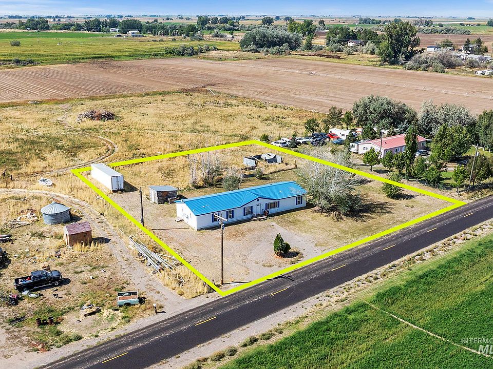 $250,000. 1 acre of land with no CC&Rs. 4 Bed 2 Bath home with 2052 sq ft. Great views! Huge master suite with an attached sitting room area. Home comes with the refrigerator, oven and washer & dryer. New metal roof was installed in 2024. Storage container in the backyard is included as a nice storage shed space. Well house offers some extra storage also. Room to park all the vehicles you want. Bring the RV, bring the toys, bring the animals! Setup a showing of this Idaho acreage property today.