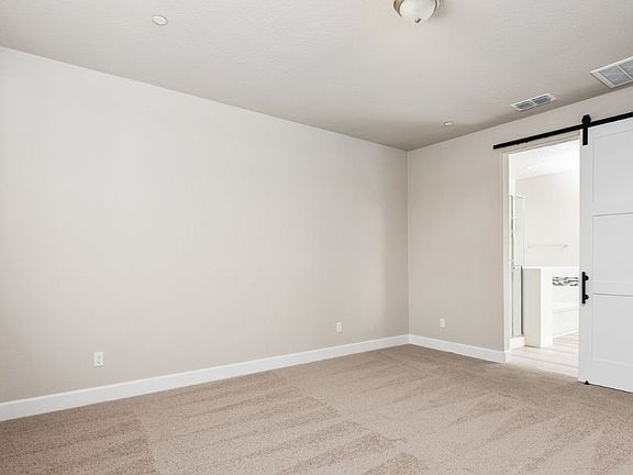 The primary suite is a haven of relaxation, featuring a barn door for added privacy to the bathroom. A large window floods the room with natural light, creating a bright and airy ambiance. A spacious walk-in closet caters to all your storage needs.