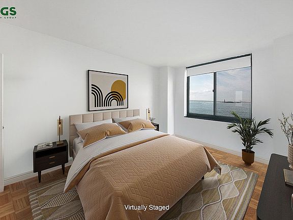 Never miss a sunset from your lofty perch in one of the South End’s top luxury condo buildings. This renovated 1br/1ba home features stunning unobstructed views of the Hudson River, New York Harbor and the Statue of Liberty. The living room can comfortably accommodate both living and dining and is open to a renovated kitchen featuring natural stone countertops, solid wood cabinets and stainless steel appliances. The bedroom can easily accommodate a king size bed with additional furniture and the renovated marble bathroom is the icing on the cake.