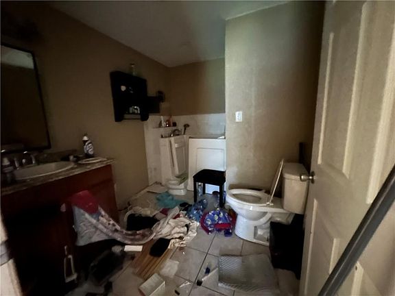Home needs cleanout and deep clean, tons of potential. Lots of square footage. Garage converted to Den with book shelves. 2012 addition to home. Bedroom, bath with walk in jetted tub and huge game room with cabinets & sink. Living room with vaulted ceiling. Kitchen has newer cabinets. Spacious dining area. Spacious laundry area. HUGE 11x6.8 closet in Master bedroom. Newer vanity/sinks in baths. Rear yard access.