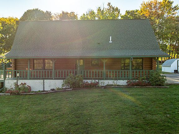 Peaceful acresLog-sided chaletCozy three-season roomOpen floor planWelcoming front porchFirst-floor laundryPlenty of natural light