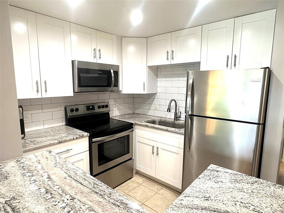 Priced to sell with low HOA fees! Convenient 1st floor entry, 1 bedroom, 1 bath condo overlooking garden area. Located in active adult community in the heart of Deerfield Beach. Open kitchen, granite counter tops with stainless steel appliances. Subway tile in bathroom & kitchen, white kitchen cabinets. Ceramic tile thru out. Two A/C units, freshly painted, parking directly in front of unit. Convenient laundry room location. CVE offers resort style amenities galore including a lavish clubhouse, 1,500 seat theater, premier performances, shuttle buses, state of the art gym, pickleball, putting greens, tennis, indoor & outdoor pools, movies, classes of every type & more! Security at entrance, cafe on property. Close to shopping, restaurants & beach. No Renting. Assoc claims 55+.
