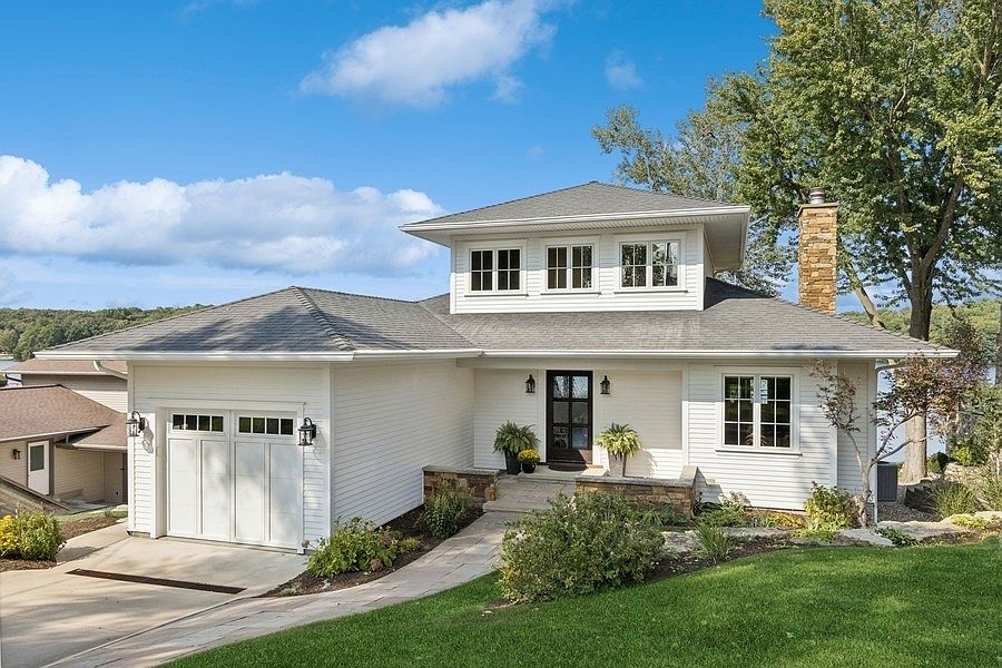 GLORIOUS, LAKE MACBRIDE WATERFRONT PROPERTY with unobstructed lake views, providing year round connection with nature and serenity. This dreamlike, custom-built home capitalizes on the mesmerizing panorama with large windows throughout, expansive deck, stone patio, fire pit and balcony. Excellent construction and welcoming ambience with warm-toned wood flooring, white painted crown molding, earth-tone paint palette, impressive gas fireplace with stone surround and reclaimed wood mantel, french doors and artistic custom steel staircase.The gourmet kitchen is appointed with abundant cabinetry and counters including new quartz island with refrigerator drawers, Sub-Zero refrigerator, Bosch dishwasher and outstanding walk-in pantry room with custom cabinetry.Perfect entertaining created with the open floor plan between kitchen, dining and living areas and access to deck. Lovely views throughout.