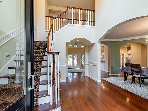 LIGHT & OPEN well-designed home featuring high quality materials & craftsmanship nestled in a cul-de-sac. Gorgeous entry w/ soaring ceilings, arched doorways, Brazilian cherry floors, & staircase to a bridge overlooking the living rm w/ light, clearstory windows & fireplace. Chef's kitchen w/granite, pantry, & eating bar for entertaining at its finest. Main level vaulted primary suite, lg bonus rm upstairs w/secret passage. Central vac, Close to Riverbend and UO.