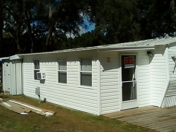 Newly remodeled unit in a family oriented 55+ community. Open concept 28 x 8 with 21 ½ x 8 wide addition totally rebuilt 6 x 8 shed attached All new kitchen, dining area, living room, 1 bedroom, bathroom, 2 6000 btu air conditioners 4” insulation in walls and ceiling, with all new electric and pluming Lot rent seasonal $210 / month; year round $235 / month includes water, sewer, and trash services phone 813-782-3843
