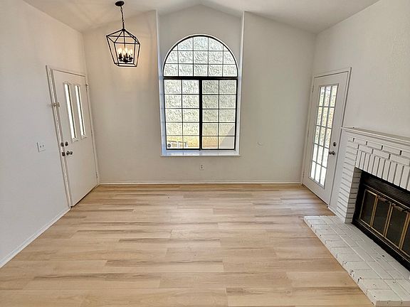Completed remodel to new, wow all new kitchen, cabinets, counters and appliances and flooring is wood style through out, new paint. Great room with center piece fireplace, 3 bedrooms, bathrooms have new Reglazing, zero landscaping, two car garage this is a winner.