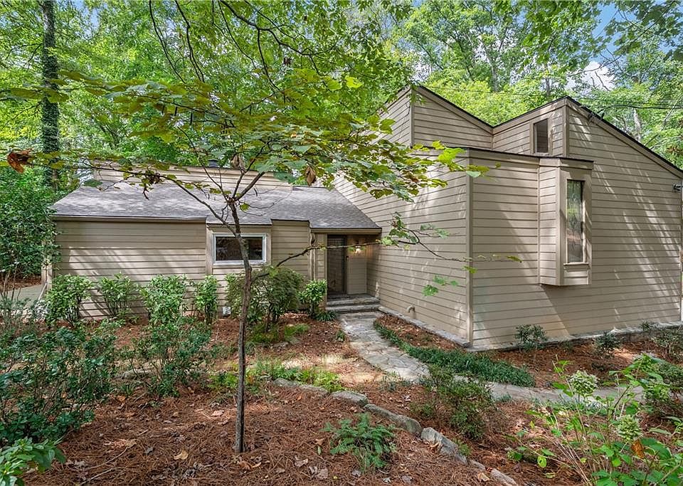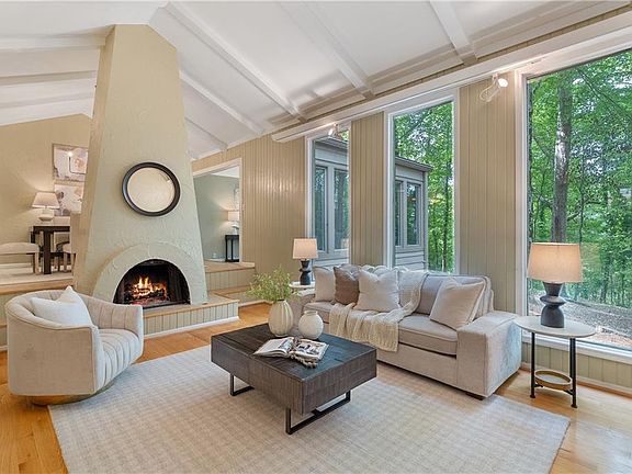 Welcome to 3771 Club Drive NW, Kennesaw, a stunning 4-bedroom, 2.5-bath contemporary retreat with mid-century modern character, ideally located in the sought-after Pine Tree Country Club community, just a short distance to the club itself and minutes from Kennesaw State University. Architectural drama meets everyday comfort with soaring vaulted ceilings, exposed beams, and a striking floor-to-ceiling fireplace anchoring the sunlit living room. Just beyond, a spectacular vaulted-ceiling sunroom with walls of windows frames serene wooded views, creating the perfect setting for morning coffee, afternoon reading, or hosting friends in a bright and airy space that blurs the line between indoors and outdoors. The open split-level design flows into a spacious dining area and kitchen, ideal for both entertaining and daily living. Expansive windows throughout the home bring in natural light and highlight the lush surroundings, while unique architectural details, arched openings, textural finishes, and clean lines add a distinctive style. All of this is set in a prime location close to shopping, dining, top-rated schools, and the vibrant energy of Kennesaw. A rare opportunity to enjoy thoughtful design, lifestyle convenience, and timeless appeal in one beautiful package.