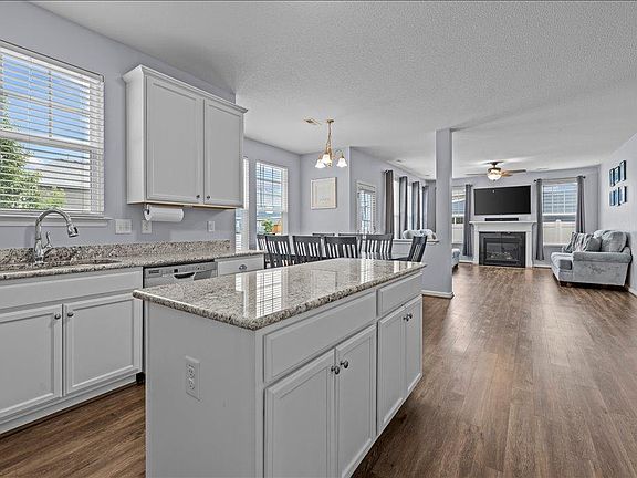 This home was designed for those looking for space! This 5-bedroom, 3-bath residence includes a first-floor bedroom with full bathroom access and a huge FROG serving as a 6th bedroom, a welcoming foyer, flex room, and dining room with columns, custom trim, tankless water heater, and LVP flooring throughout the first floor. Tray ceilings highlight the master suite and dining room. The primary bathroom features a full ceramic tile double shower, large soaking tub, and ample closet space. The open kitchen boasts granite counters, white cabinetry, and a stainless steel appliance package. Enjoy the gas fireplace, patio, and a quiet lot next to a nature preserve. This home blends style, comfort, and tranquility, don't miss it!