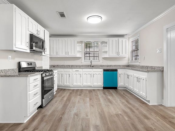Updated 4 bedroom 2 bath home.  Located on a large corner lot, most of the yard is fenced.  Open kitchen with room for an island.  Granite counters and stainless appliances.  Long life metal roof! This home is move in ready with lots of space!