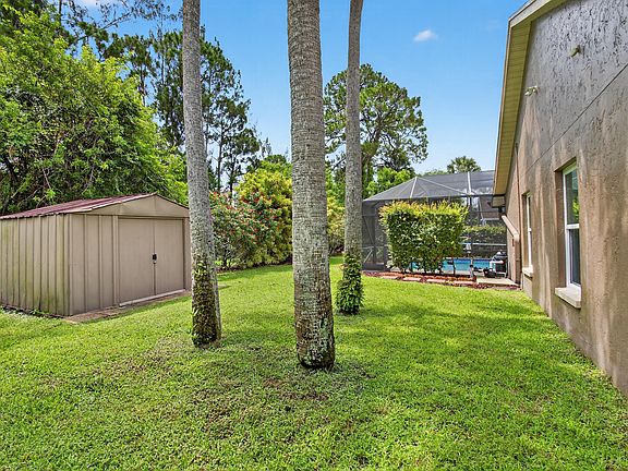 Brand New Roof! Installed 2025! This beautifully updated 2,200 sq. ft. split floor plan home is ideal for you and entertaining! It features a spacious master suite with a soaking tub, tiled walk-in shower, dual vanities, and new hurricane impact windows. The master bedroom boasts new high-grade vinyl flooring and fresh paint, as do the formal dining and living rooms. The eat-in kitchen has new cabinets, quartz countertops, hurricane slider, and fresh paint. An oversized family room and upgraded second bathroom with cabana access enhance functionality. Enjoy the resurfaced screened-in pool and deck with a new pump, plus a large backyard and storage shed. Three additional bedrooms feature upgraded laminate flooring and impact windows. The two-car garage includes attic stairs to a large floored storage area