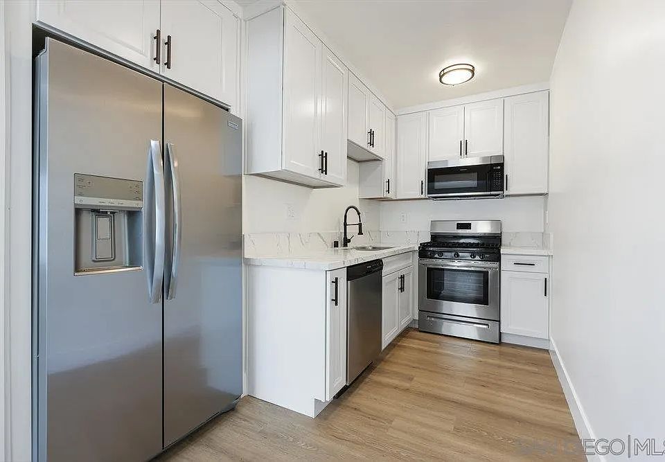 Modern 1bdr/1bath/1 car garage with private patio space in the heart of North Park! Newly remodeled unit with only 1 shared wall. Upgrades include new HVAC, new flooring, new kitchen with new countertops, cabinetry and stainless steel appliances, new bathroom, new windows, new shades and more. Walk to Balboa Park and restaurants, gyms, shops and everything North Park has to offer. $2,450/month + $2,450 deposit. Shared laundry room with free laundry. Landlord covers water, trash, internet. Available for November 16 move-in.