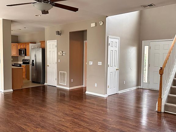 Spacious family roomCeiling fanLaminate flooringOpen floor planFenced in backyard