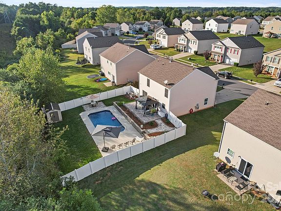 Step inside this immaculate, light-filled home and prepare to be charmed! The open-concept living space creates a wonderful flow, perfect for entertaining or relaxing. Modern eat-in kitchen with stainless steel appliances, and beautiful laminate wood flooring throughout the main floor offer convenience and style. Upstairs you can retreat to a spacious primary bedroom, featuring an ensuite bathroom and a large walk-in closet with plenty of storage space. Down the hall, you'll find two additional bedrooms, offering flexibility for guests, a home office, or a growing family. While the interior is beautiful, the show stopper is found outside! Imagine spending your afternoons by your private pool, set within a secure, fenced-in backyard, lined at the back by mature trees. The pool is heated, so you can enjoy it for many months of the year. The large patio is the ideal spot for summer BBQs, outdoor dining, or enjoying your morning coffee. This backyard is ready to be your favorite escape. Proximity to Crowders Mountain allows for easy access to weekend hikes and stunning views. Commuting is also easy with quick access to to I-85, and you're just minutes from everything Gastonia has to offer, from dining and shopping to parks and entertainment. Don't miss the chance to make this lovely property yours!