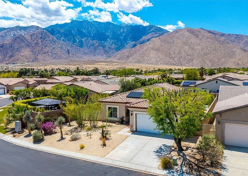 Stylish Desert Oasis with Paid SolaWelcome to this beautifully updated single-family residence in the prestigious gated community of Mountain Gate, Palm Springs. This 2-bedroom, 2-bathroom desert gem offers the perfect blend of security, style, and sustainability. Recently renovated throughout, this home boasts elegant new quartz countertops in the kitchen that complement the modern aesthetic. Both bathrooms have been completely refreshed with new vanities and updated showers, creating spa-like retreats within your own home. The entire property has been freshly painted inside and out, giving it a crisp, contemporary feel. Step outside to enjoy the newly installed patio covers, providing perfect shade for those warm Palm Springs days. The crowning jewel of this desert oasis is the newly refinished pool and spa—ideal for year-round enjoyment of the legendary Palm Springs lifestyle. Perhaps most impressive is the fully paid-off solar system, offering significant energy savings in this sun-drenched location. This eco-friendly feature adds exceptional value while reducing your carbon footprint. Located within the secure, gated Mountain Gate community, this home offers both tranquility and convenience, with Palm Springs' world-class dining, shopping, and entertainment just minutes away. Don't miss this turnkey opportunity to own a slice of Palm Springs paradise! No Land Lease! Paid OFF SOLAR!