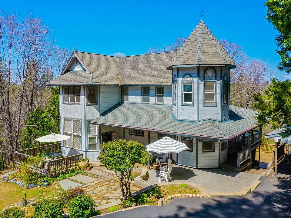 Rustic gardens and stone pathways lead to this charming, contemporary farmhouse surrounded by tall pines. The spacious kitchen has granite countertops and a charming breakfast nook for enjoying your morning coffee. There are Decks galore that make entertaining easy. The 'secret room' downstairs is perfect for curling up with a good read. Three bedrooms and 2 baths are upstairs along with a convenient office space in the master. Downstairs below the Livingroom is the secret room that is being used for wine storage , family room with loft bed, plus the laundry room is down here with a 1/2 bath. Off of this level you can go right out to the deck areas. Sellers used to have a pool in the open area off of the decks. This home is secluded but close to conveniences. Come check out this great home.