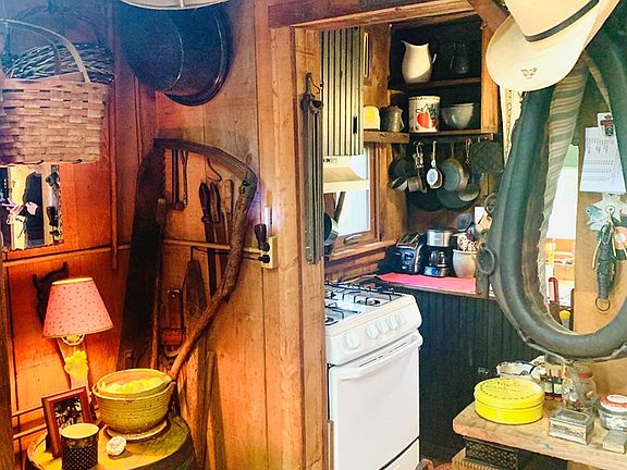 This cozy 2 bedroom cabin on 1.76 acres could be what you are looking for as a week-end getaway or an investment for an Airbnb! Once owned by a well known local artist that was inspired and created many works of art here. It features many new updates that include a 2 yr roof, new appliances, some new windows, new hot water tank, new roof on shed. Front roofed porch, back deck, upper deck are a few of the places to sit back and enjoy! Come be inspired to see what can make you want this cabin in the woods!