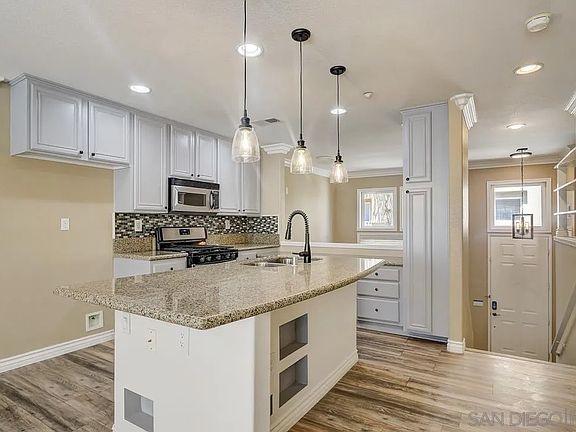 Fantastic 2 bedroom home in sought after San Diego location. The kitchen is equipped with updated countertops, tile backsplash, ample cabinets, and a center island with breakfast bar. Lighting, ceiling fans, and fixtures flow throughout. The primary bedroom features plush carpet, a spacious closet, and a private bathroom. Entertain on the back patio, perfect for barbecues. Don't miss this incredible opportunity.