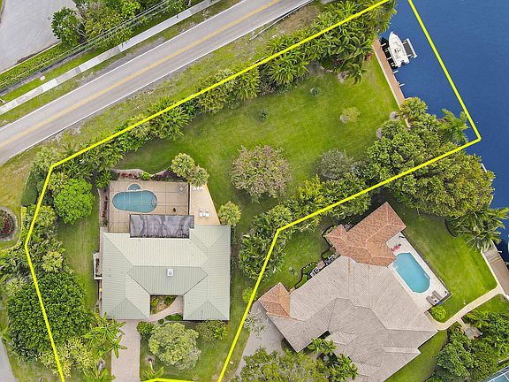 Discover the largest waterfront lot in the prestigious Stuart Yacht and Country Club! This expansive .66-acre property is a dream come true for boat enthusiasts, nature lovers, golfers, or anyone seeking an exceptional South Florida lifestyle. Imagine living in your own private park, just minutes from stunning beaches and charming downtown areas. This delightful home features 4 bedrooms, 3 full bathrooms, and a perfect split floorplan. The open kitchen seamlessly connects to the living, dining & reading areas, all centered around a beautiful fireplace. With full hurricane impact windows & sliding doors, plus a durable metal roof & Hardi-plank siding, you can enjoy peace of mind year-round. Boaters will love the large dock equipped with power, water, and space for two lifts. One lift is currently installed. Jump on your boat and cruise through the manatee pocket, the Inlet is just 15 minutes away!