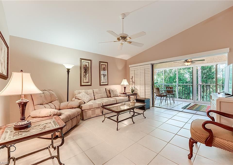 NEW PRICE! Come experience this fantastic 2 Bed + DEN, 2 Bath condo! It is TURNKEY FURNISHED WITH VIEWS OF TIBURON, WITH NO ROAD NOISE, in the coveted gated community of Wilshire Lakes. Nestled off Vanderbilt Beach Rd, you're buying into a lifestyle surrounded by immaculate grounds. This bright 2nd-floor unit lives large thanks to vaulted ceilings and an inviting open layout – perfect for relaxing or entertaining. Tile floors flow through the main spaces, with carpet warming the bedrooms. Your Master Suite? It's generously sized with walk-in closets and a full bath boasting dual sinks, a tub, and separate shower. Need a work-from-home space or guest room? This unit also has a spacious DEN that could be used as a third bedroom! The best part? Step through sliders onto your quite (no road noise here looks out towards Tiburon) expansive screened lanai – your private perch for enjoying Florida mornings and evenings. Plus, the convenience of an in-residence laundry room. Ideal as a full-time residence or the ultimate vacation getaway. This Wilshire Lakes gem offers location, space, and lifestyle.