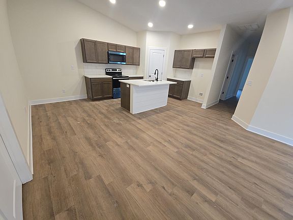 The kitchen is the heart of the home, featuring a large walk-in pantry, bar seating, and sleek appliances including a range, microwave, refrigerator, and dishwasher. Whether you're hosting friends or cooking a quiet dinner, this kitchen is built for both style and function.